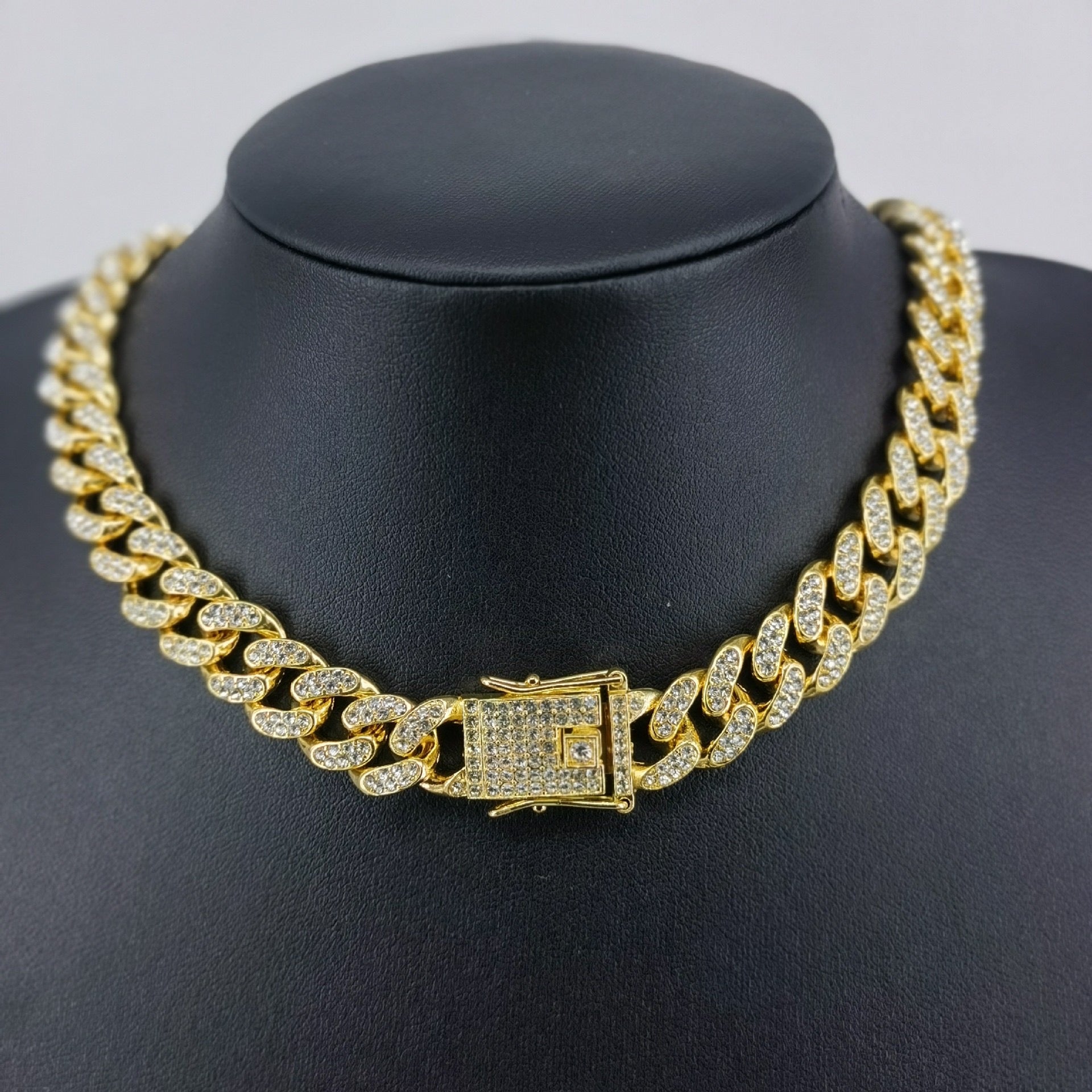 Cadena estilo cubana diamantada gruesa (9 mm) en oro laminado 18k para hombre (60 cms)